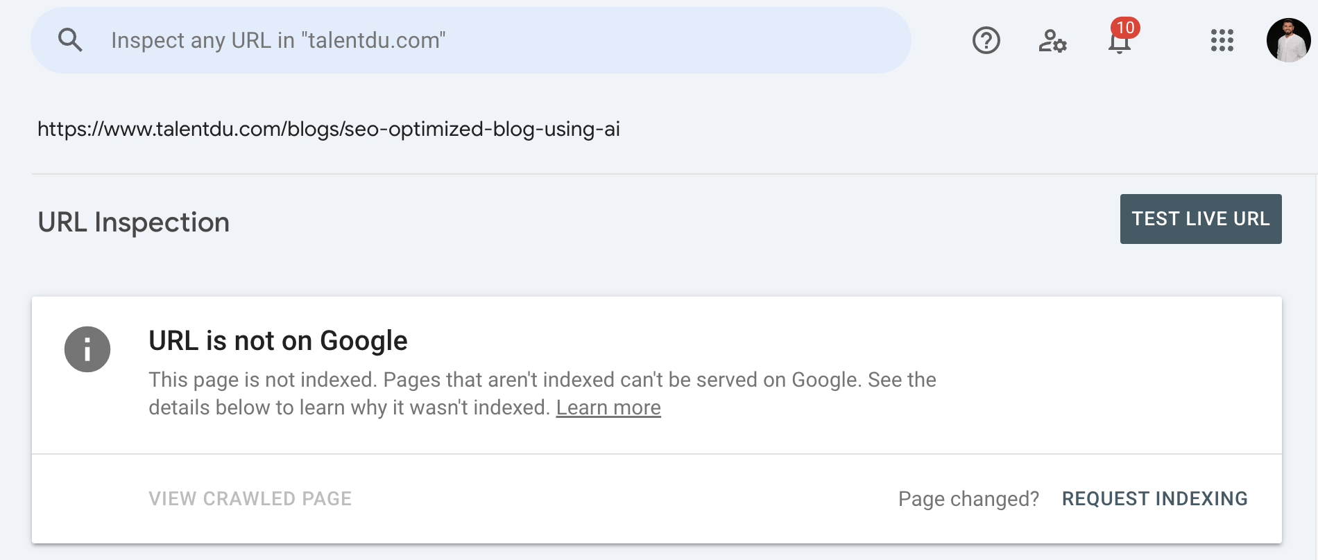 Log into your Google Search Console account, paste the URL of your blog post into the URL Inspection Tool, and request indexing. This speeds up the indexing process, making your blog visible to search engines faster.